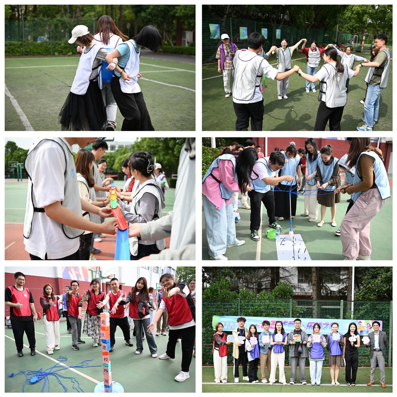下午,在奉浦校区小足球场,一场别开生面的师生校友趣味运动联谊赛火热开赛。参赛师生校友们分成五队,身着统一队服,精神抖擞地投入背夹球、合力筑塔、珠行万里等趣味项目,赛场上,队员们默契配合、奋力拼搏,现场呐喊声此起彼伏。“我爱上商祝福语DIY”特色环节中,大家运用自己所学英语、日语、朝鲜语,用画笔自由创作,在卡片上勾勒校园记忆、书写对母校的真挚祝福。活动最后,学院为获奖队伍颁奖。这场充满活力与温情的联谊赛,不仅充分展现了师生校友间深厚的情谊与强大的团队精神,更以欢声笑语、满满心意,为建校75周年献上了最温暖真挚的祝福。