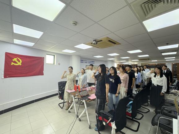 本次活动还组织了“过政治生日”,学生党支部为全体党员发放政治生日贺卡,重温入党初心。政治生日贺卡上记录着党员们入党时的誓言和党组织的期望,让党员们在重温入党初心的同时,也感受到了党组织的关怀和温暖。全体党员面向党旗,庄严重温入党誓词,彰显党员们对党的忠诚与为共产主义奋斗终身的决心。重温入党誓词让党员们再次感受到作为一名共产党员的荣誉和责任,激励他们在今后的日子里不忘初心,牢记使命。此外,大家一同观看了纪念视频,回顾了在校期间的学习生活与成长历程,视频中一幕幕熟悉的场景勾起了党员们的美好回忆,也让他们更加珍惜党员身份,坚定前行方向。