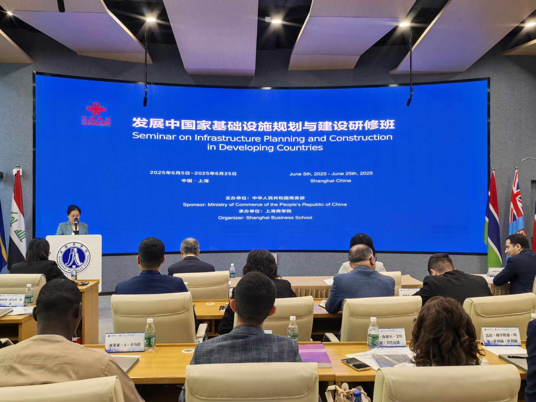 6月5日上午,由商务部主办、我校商务部国际商务官员研修基地(上海)承办的发展中国家基础设施规划与建设研修班开班仪式顺利举行。上海商学院国际教育学院院长、商务部国际商务官员研修基地(上海)主任刘斌,同济大学建筑与城市规划学院副教授庞磊出席本次开班仪式并致辞。