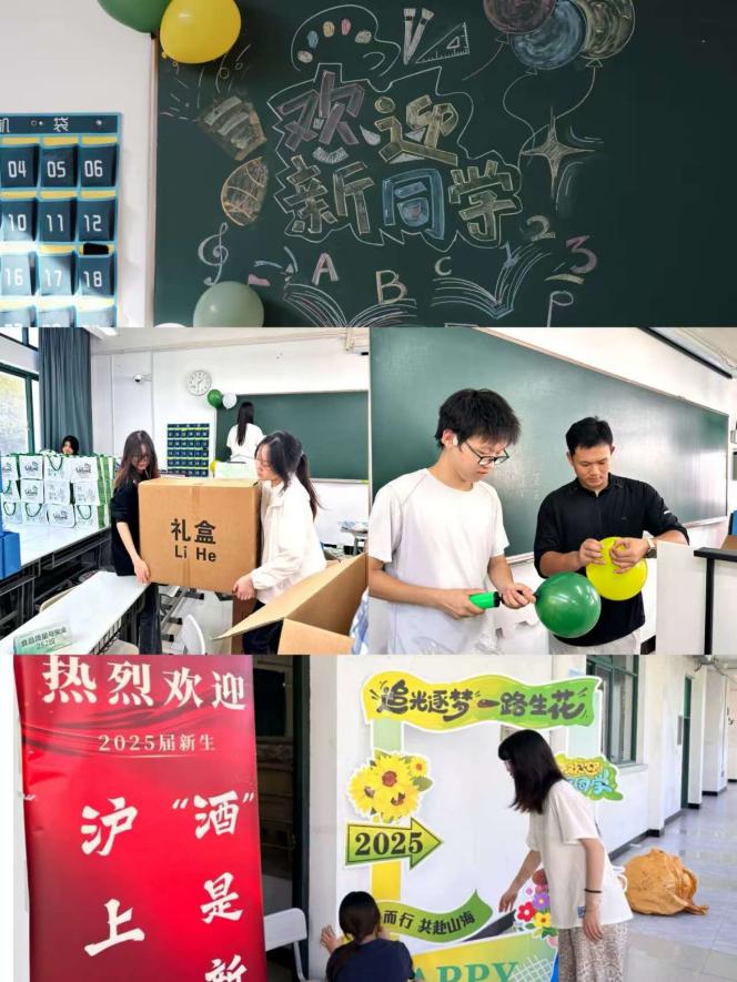 为确保新生报到工作平稳有序,酒店管理学院提前展开了细致周全的报到筹备工作。学院学工团队与团学成员们提前规划流程,与志愿者团队通力合作,共同为新同学报到工作做好准备。在新生报到前,学院就通过新生群分享开学时的报到流程;对接学姐、学长们也主动询问行程、细心答疑,并贴心提醒初秋校园的温差变化,每一份叮嘱都藏着对新同学的暖心牵挂。报到前一天,酒店管理学院的师生们带着期待早早来到校园,投入到报到现场的布置中。志愿者们分工明确,高效完成了教室布置、引导标志设立、搬运新生报到礼包等工作,将教室布置得既温馨又规整,静静等候新生的到来。行程的起点虽有不同,却因为“酒管学子”这个共同的身份,最终在上海商学院酒店管理学院相聚。