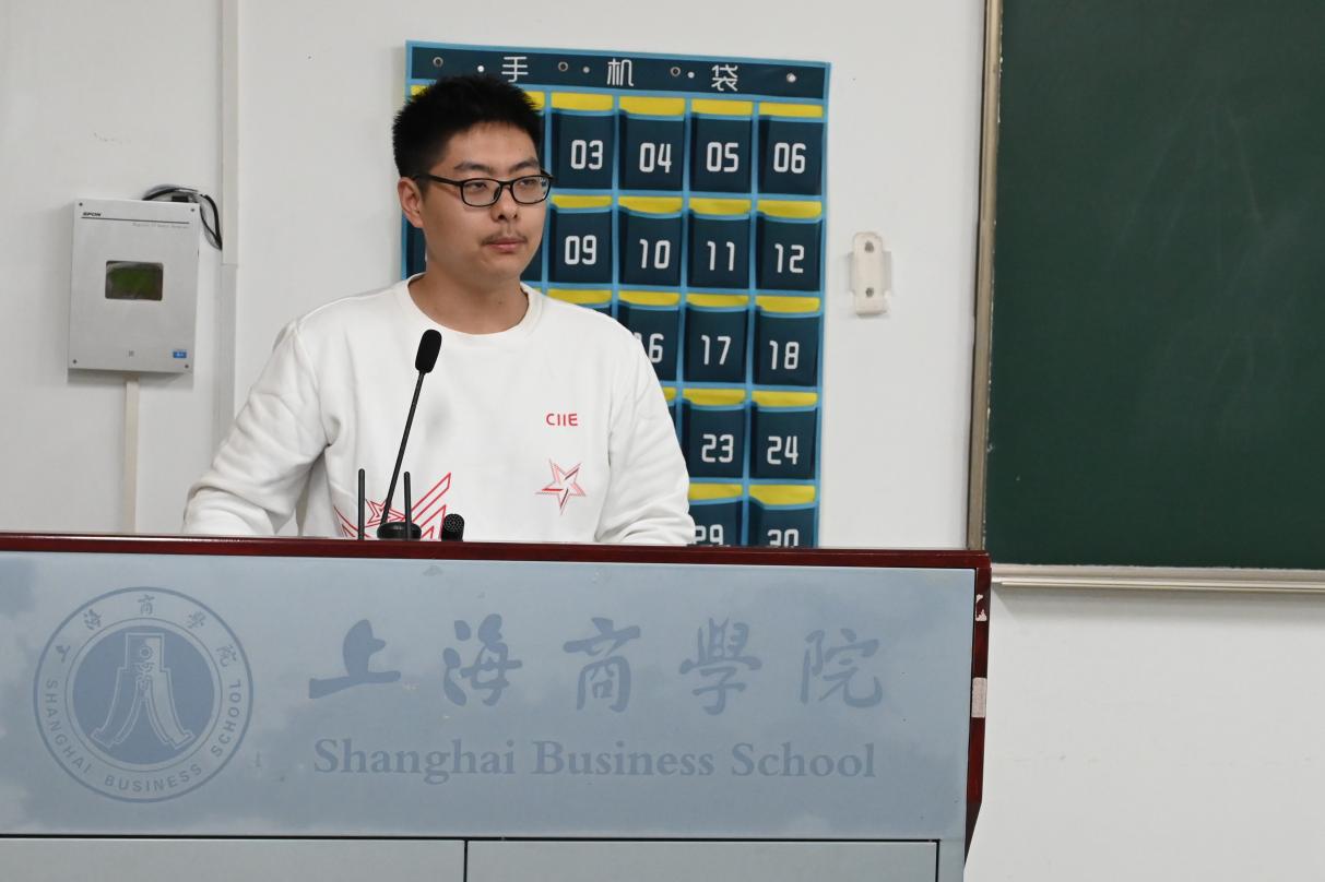 图为第七届中国国际进口博览会校级“优秀志愿者”朱恩良分享