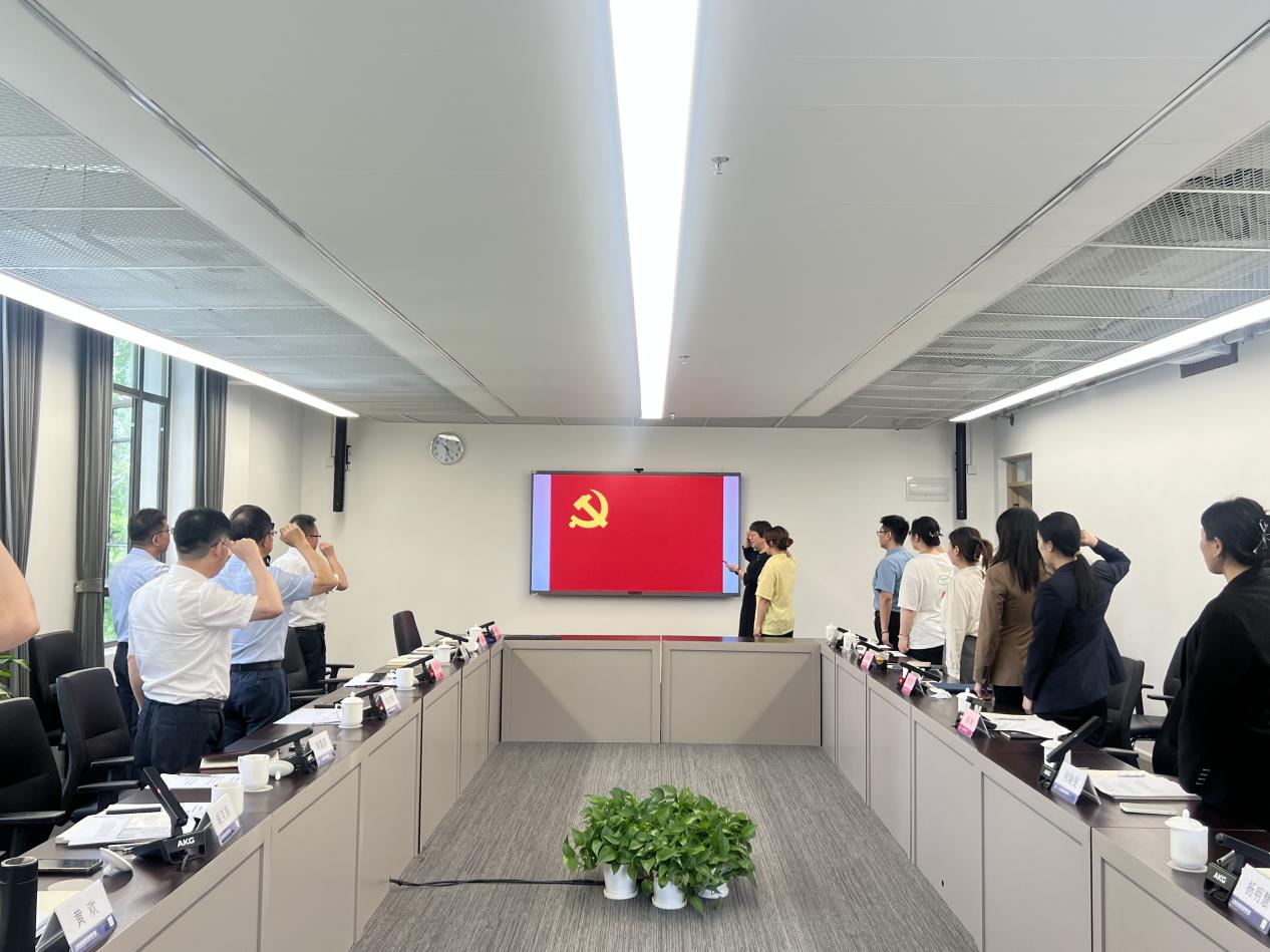 随后,会议举行了庄严肃穆的重温入党誓词仪式。在胡笑寒同志的领誓下,全体党员面向鲜红的党旗,高举右拳,铿锵有力地重温了入党誓词。·