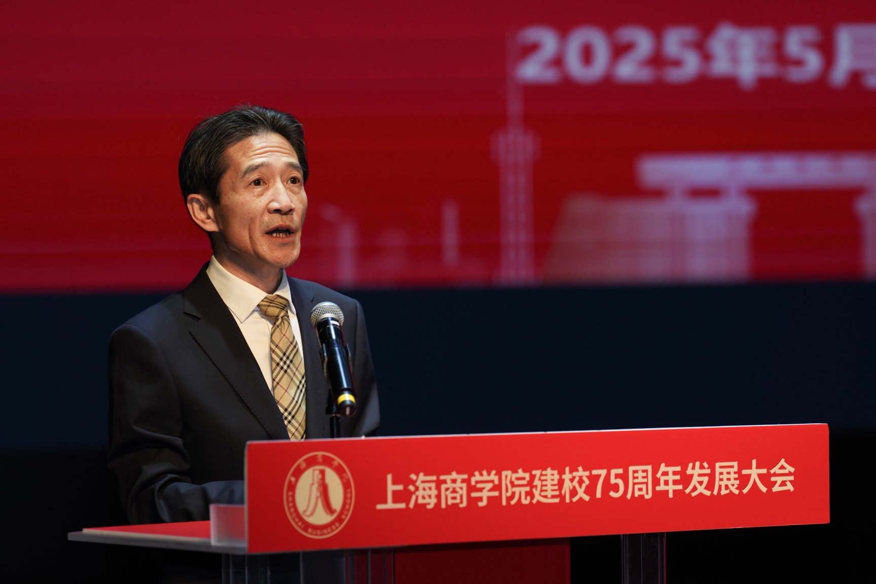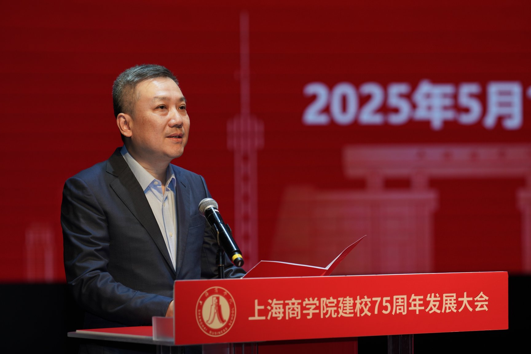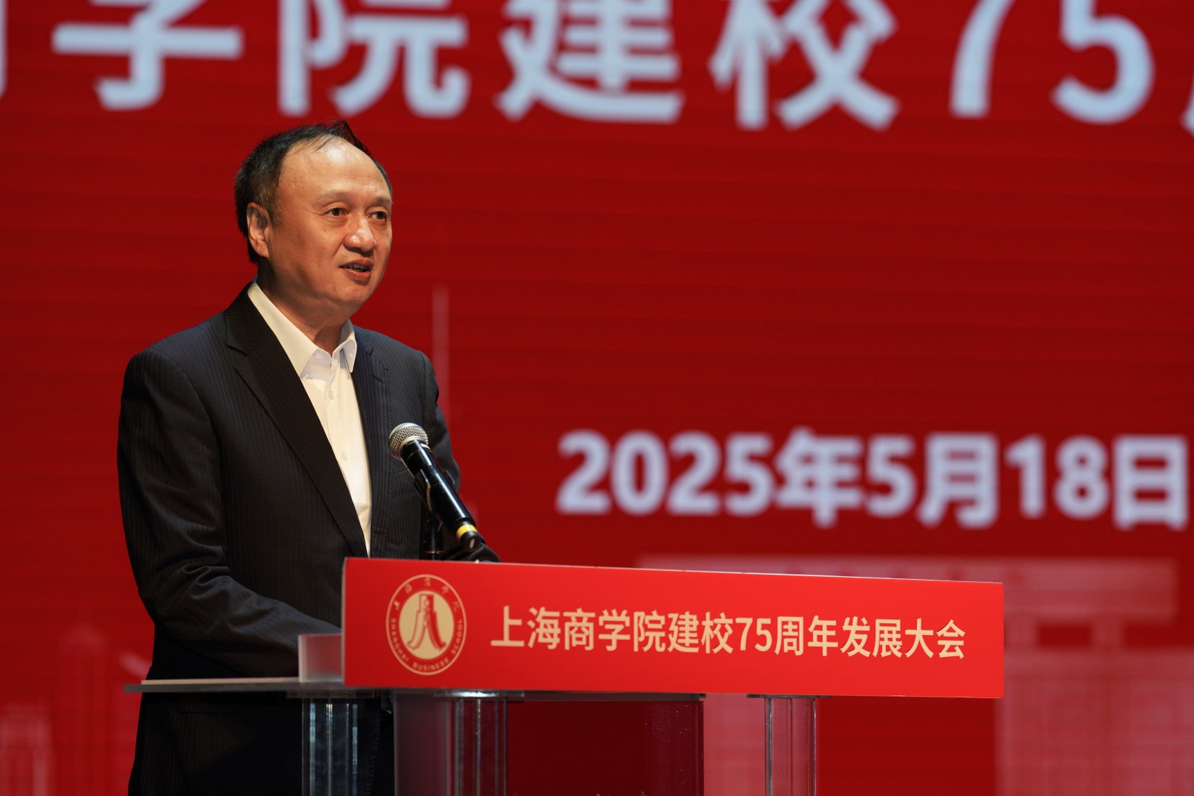 在激昂的国歌声中,大会正式拉开序幕。上海市教委副主任赵震代表市教委,向上海商学院全体师生和海内外校友,表示热烈祝贺。赵震指出,上海商学院为国家和地方经济培养了一大批高素质应用型商科人才,为全市高等教育质量提升、为城市经济社会发展做出了积极贡献。希望上海商学院抢抓机遇,在服务大局中展现新担当;坚守特色,在创新人才培养上探索新模式;聚焦重点,在深化综合改革中实现新跨越,在新征程续写新篇章、创造新伟业。
