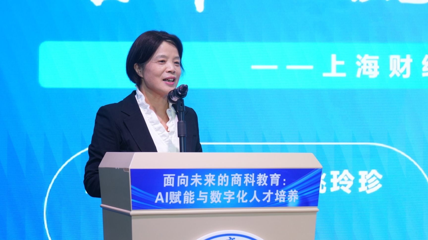 上海财经大学副校长姚玲珍带来“推进数智化转型 培养一流商科人才”的主题演讲,详细介绍了上海财经大学在学科交叉融合、课程体系重构、实践平台搭建等方面的经验。她表示,高校需以开放姿态拥抱技术变革,通过深化与企业、科研机构的合作,共同破解数智化人才培养中的痛点与难点。