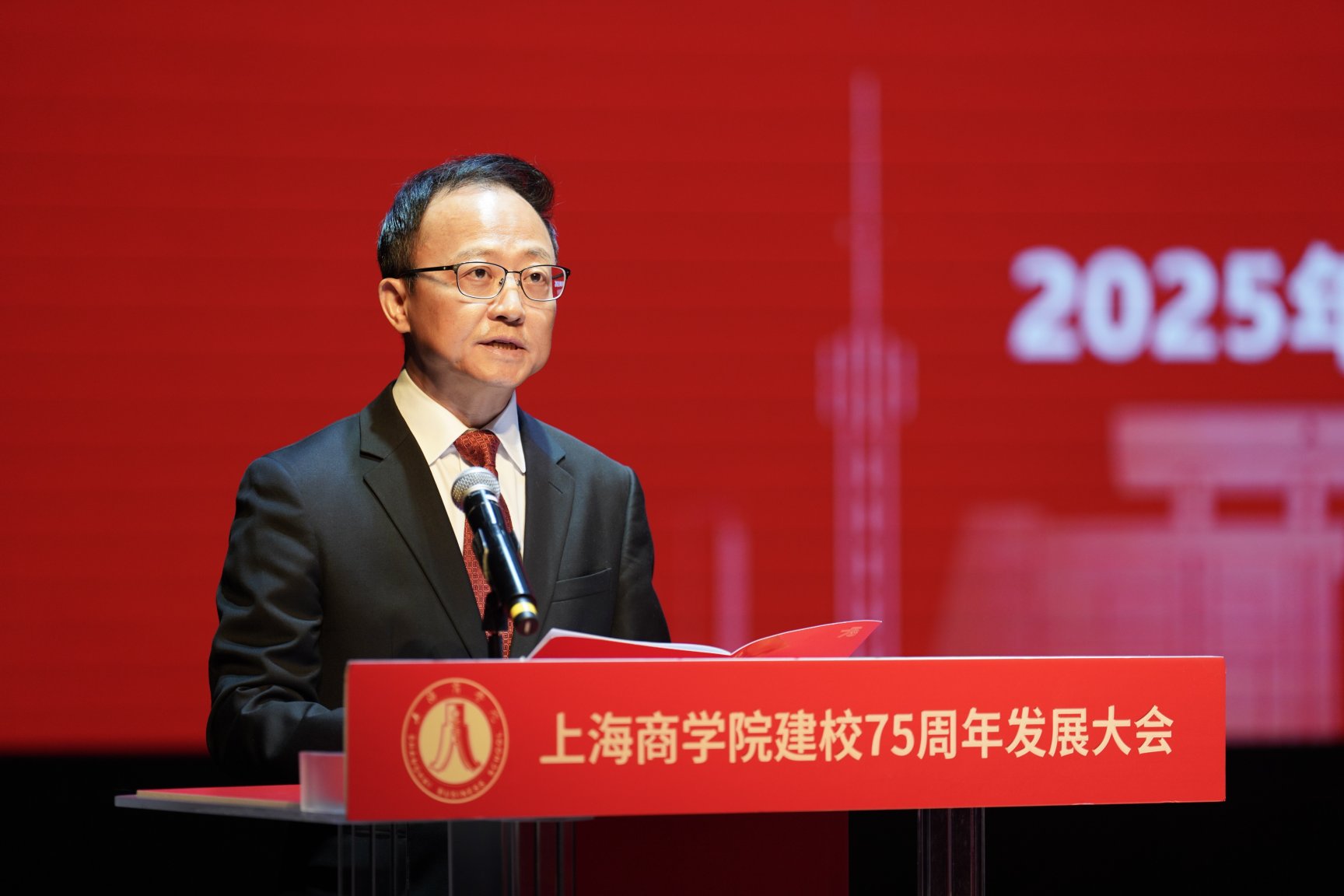 吴忠在大会上作题为“厚德博学七五载 经世济民启新程”学校建校75周年发展工作报告。吴忠表示,面对数字化转型浪潮与构建新发展格局的战略机遇,学校以全面深化改革为突破口,举旗定向,巩固党建领航发展全局,大力弘扬优良党风涵养育人生态;固本培元,坚守立德树人根本任务,大力培养高水平应用型商科人才;经世致用,聚焦服务中国式现代化建设,大力提升社会服务质量与能力;擦亮品牌,深化教育对外开放布局,大力开拓国际合作协同网络;明德铸魂,弘扬新时代教育家精神,大力锻造高素质专业化教师队伍,奋力谱写学校高质量内涵式发展新篇章。