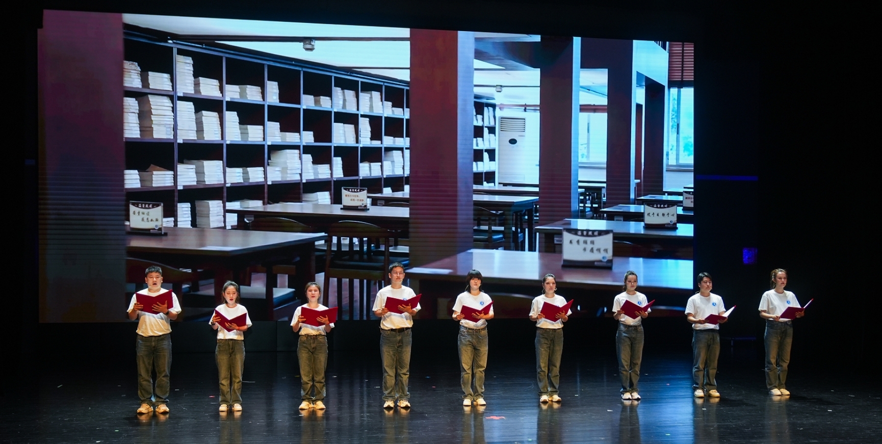 图为学校教职工、学生代表原创诗朗诵