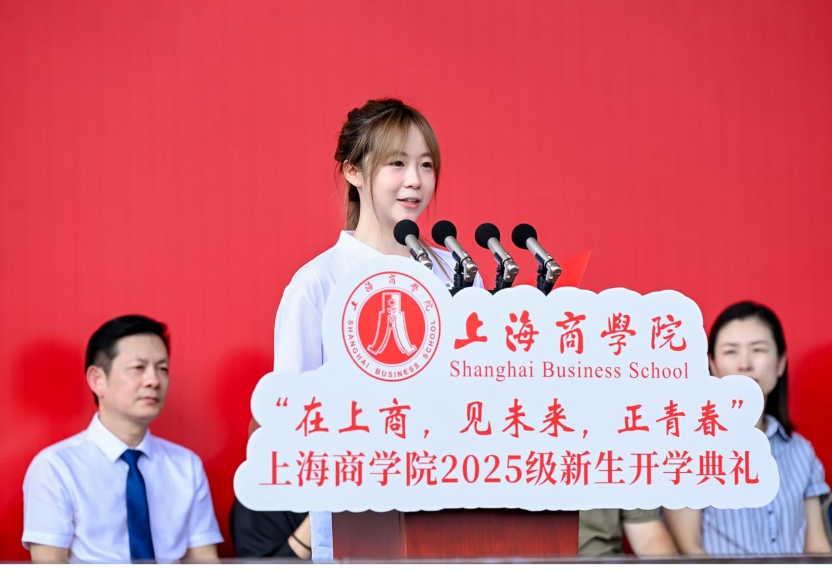商务外语学院院长段俊晖教授以《朱红瑞白中启航——变革时代书写新上商人的经纬华章》为题,代表全校教师表达了对新生的殷切期望。朱红与瑞白不仅是校园的色彩,更是上商人血脉中的热忱与担当,是学子心中的纯粹与希望。在全球化与数字化交织的今天,中国正从“世界工厂”向“世界市场”跨越,从“商品出口”向“规则输出”进阶,希望同学们在“厚德博学,经世济民”校训的指引下,兼顾专业深度与人文温度的商业素养;面对AI与数字化浪潮,构建理论、数据、实践三位一体的能力体系;厚植德行、博采学问,以经世之能、济民之心,成长为“有温度、有锐度、有高度”的新上商人!