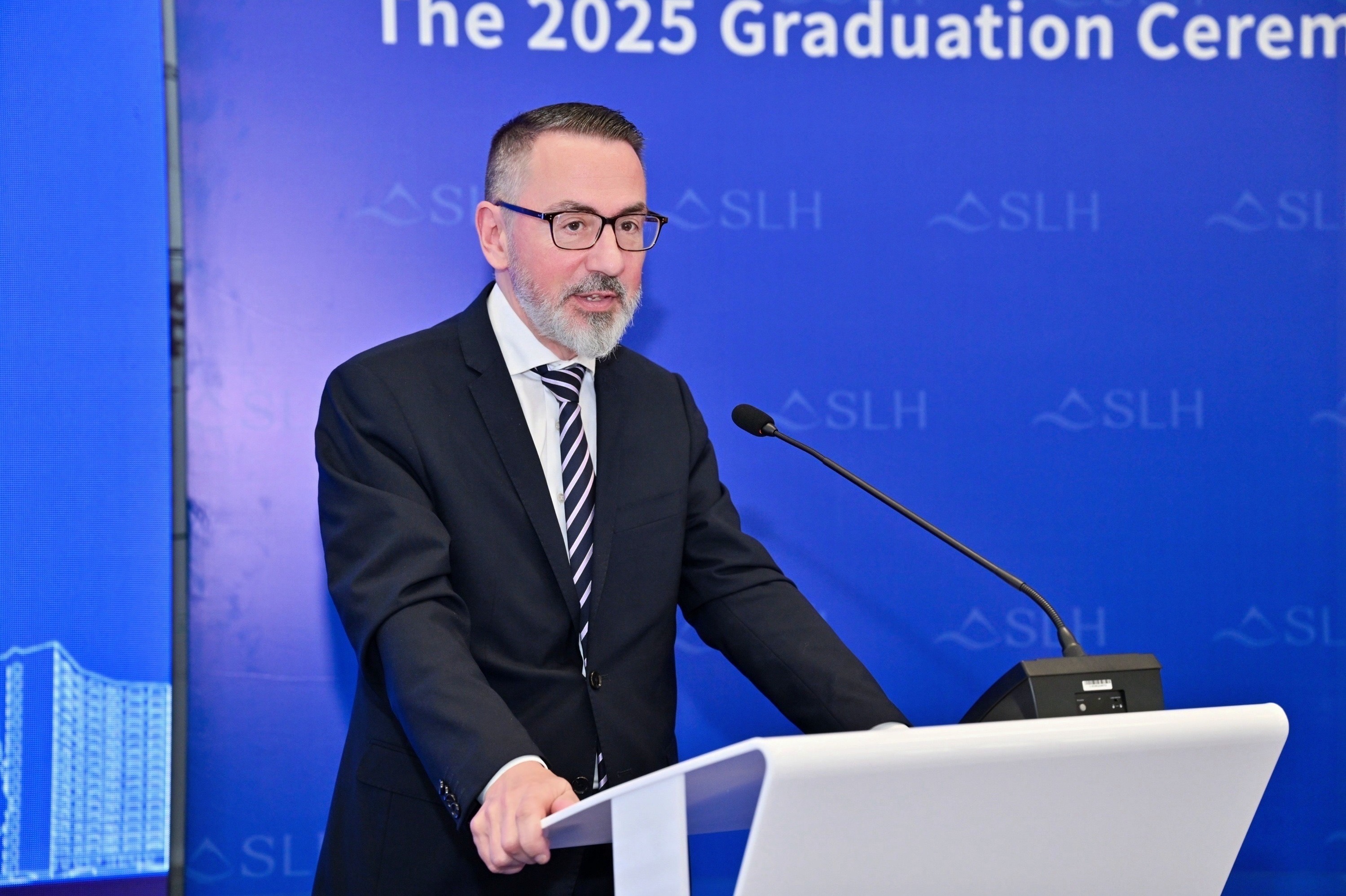 首批毕业生们即将背起行囊,奔赴四方。临行前,吴忠代表全校师生,为全体毕业生送上饱含深情的临别赠言与殷切嘱托。他指出,毕业生们正肩负着推动中国服务品牌走向世界的时代使命,并以“三个形象”勉励各位毕业生:第一,传承“精业笃行”的匠心,做行业品质的坚守者。坚守以人为本的服务本质,让技术成为提升体验的工具,在高端泛服务业运营领域,树立中国服务的品质标杆。第二,践行“创新求变”的担当,做行业变革的开拓者。以跨界思维在“泛服务业+科技”“泛服务业+文化”等交叉领域寻找创新点,让创新思维成为职业发展的核心竞争力,在行业变革中勇立潮头。第三,胸怀“兼济天下”的格局,做文明互鉴的推动者。既能将瑞士泛服务业管理的精细化标准与中国“宾至如归”的待客之道相融合,也能在国际品牌本土化运营中,让中华优秀传统文化成为服务发展的灵魂内核。希望2025届毕业生在国际化的舞台上,用卓越的专业能力诠释“知行合一”的品质与内涵,以今日之所学,赴明日之山海,在酒店管理与泛服务业的广阔天地中,书写独属于他们的华彩篇章。