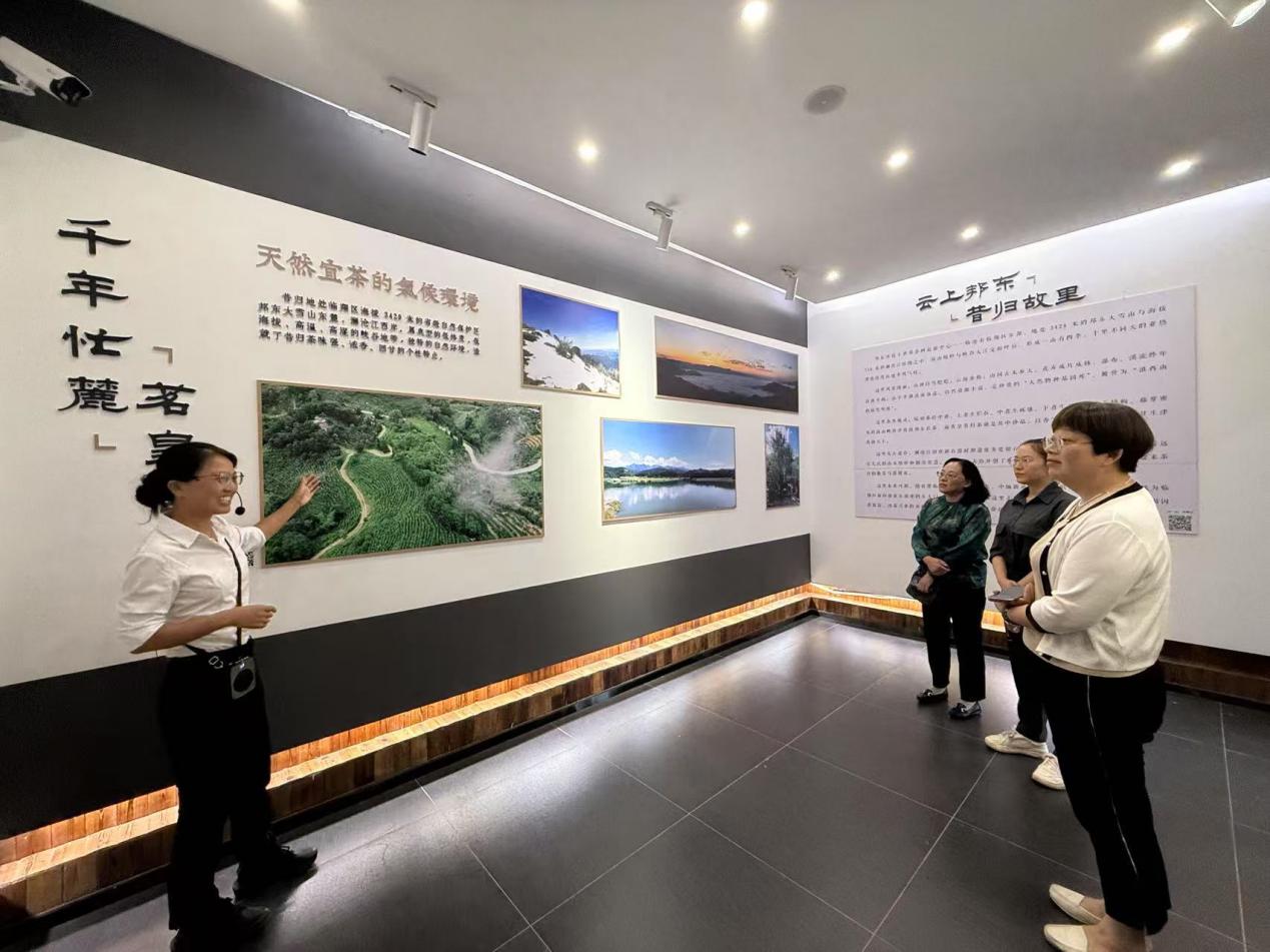 6月20日,考察团首站抵达临沧市临翔区邦东乡昔归村。在邦东乡乡长尹蕾陪同下,考察团实地走访昔归茶博馆和忙麓山古茶园,现场观摩省级非遗“昔归团茶制作技艺”传承人王支良的工艺展示,深入了解忙麓山普洱茶产业发展历程及文旅融合创新模式。劳晓芸对邦东乡坚持党建引领,落实“两不愁三保障”要求,扎实推进乡村振兴、惠及百姓民生的实践表示赞赏。双方围绕非遗传承人参与真人图书馆项目、共建校外实践基地、联合开发大中小学思政课程、运用AI无人机技术提升茶园管理、合作开发茶叶文创产品等方面进行了深入交流。随后,考察团访问滇西科技师范学院,受到学院党委副书记施勇热情接待。该校拥有国内一流的茶学专业,致力于培养茶树育种栽培、茶叶生产加工、审评检验、市场营销及茶文化传播的高素质应用型人才。考察团参观了茶叶生化实验室、初加工与深加工实验室、审评实验室及茶艺茶道实训室等教学科研场所,并就人才培养、学科建设等进行了交流洽谈。