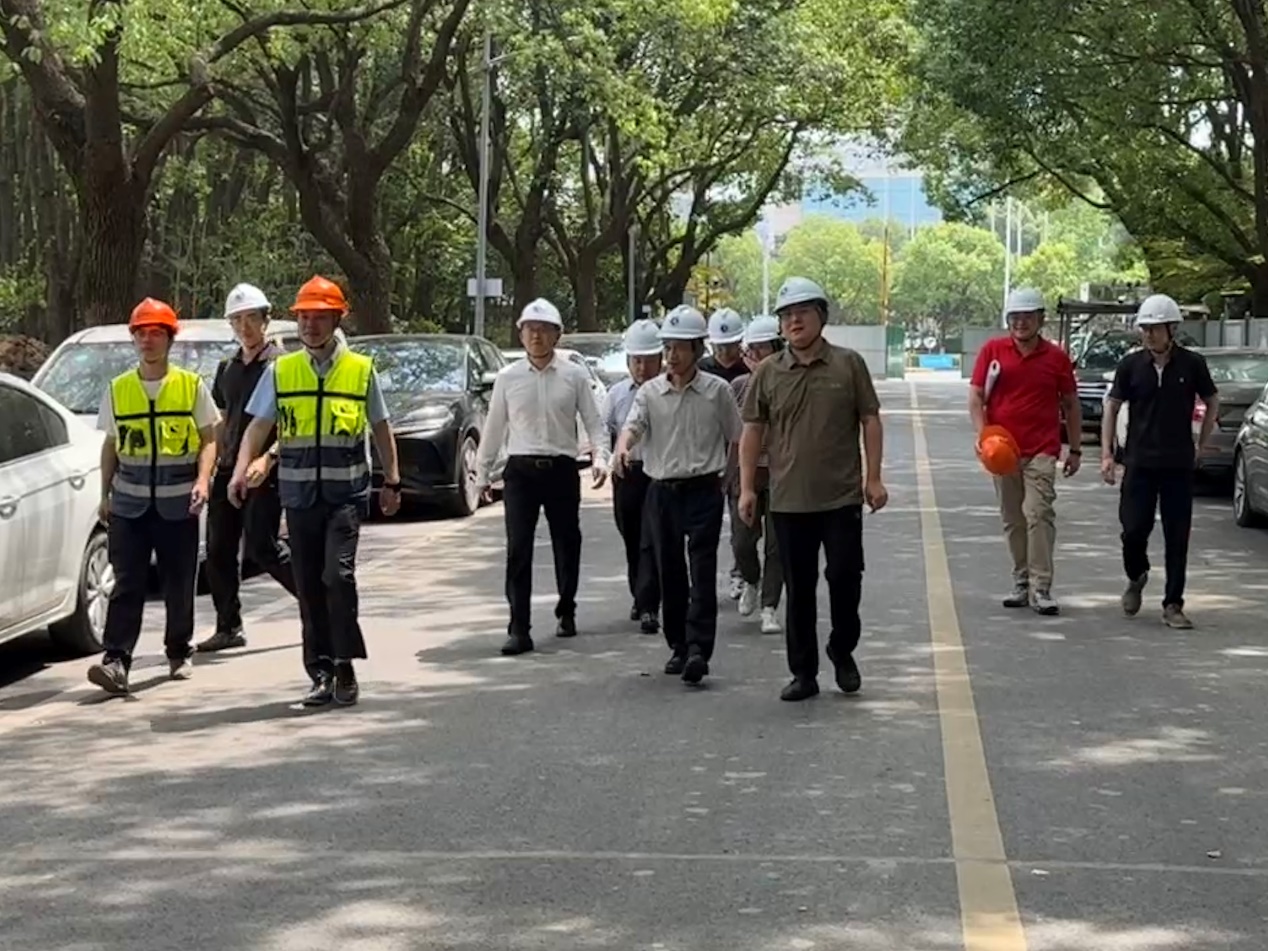 7 月 16 日上午,校长吴忠,副校长张绍华带队检查奉浦校区安全情况,并进入施工现场,察看施工进展。校办、后勤保障处、基建处、保卫处等部门负责同志和项目各参建方人员参加检查。